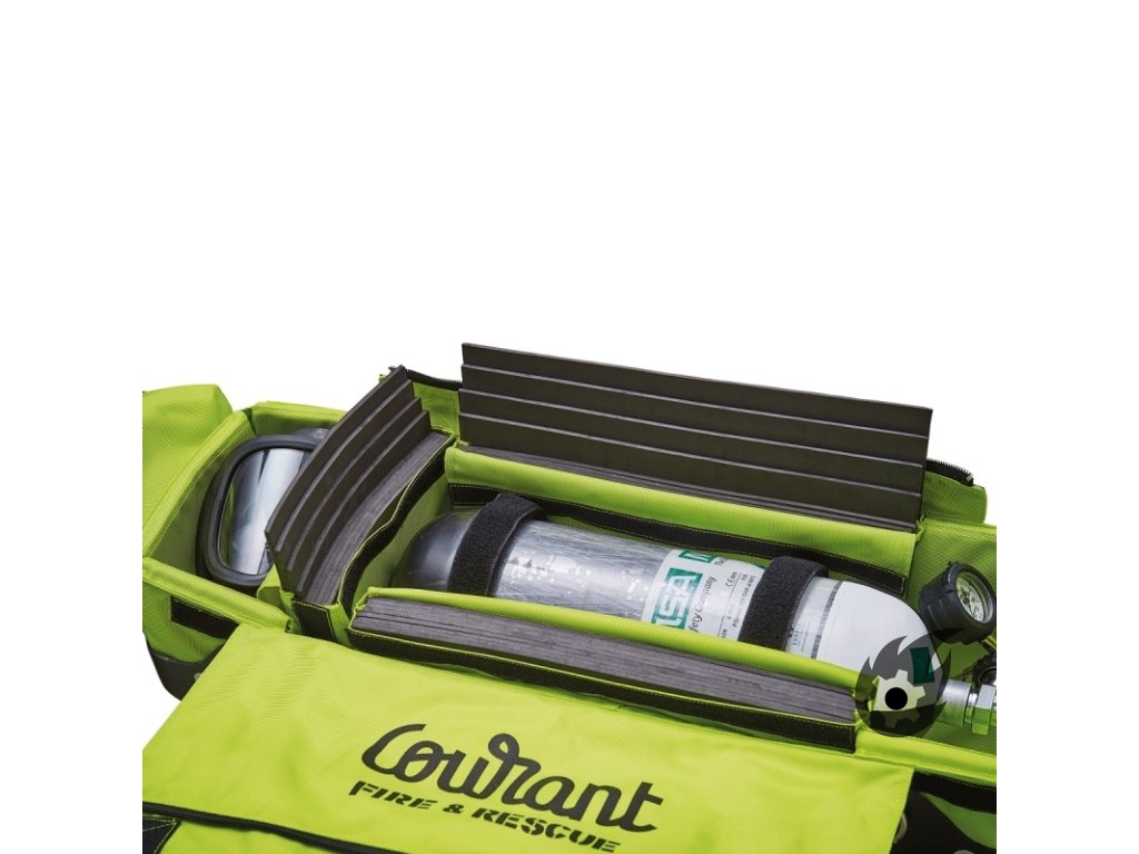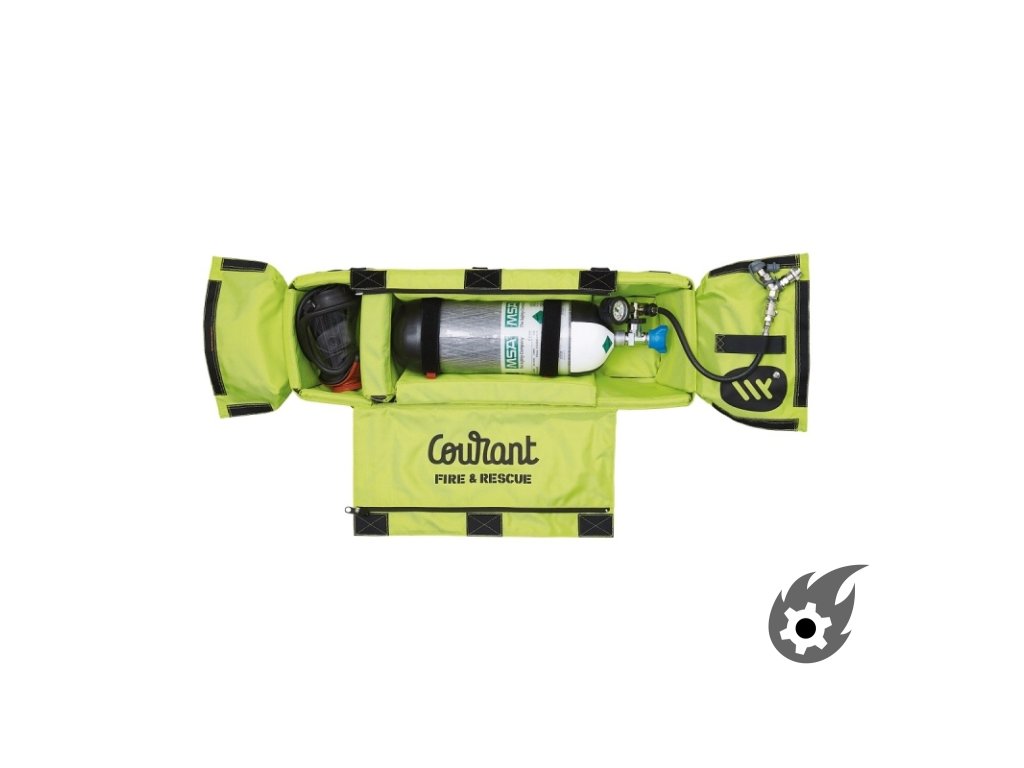 - Transportní taška navržená přímo hasiči pro uložení obličejové masky a kyslíkové lahve (6 - 9 litrů).