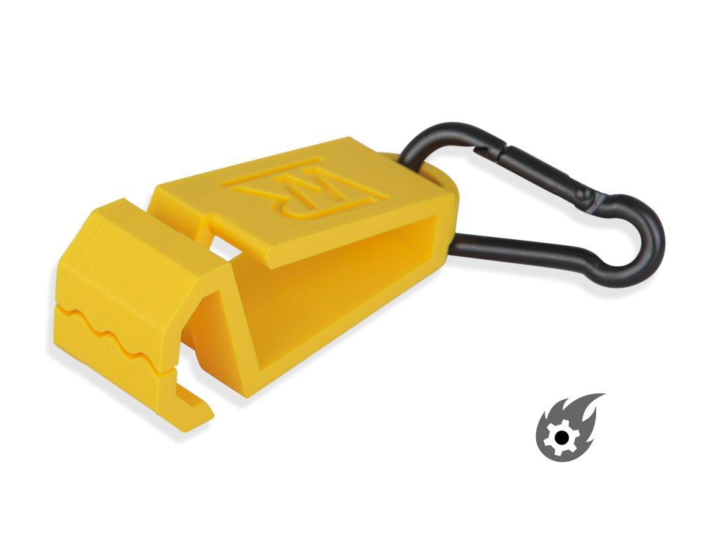 Rukavicový držák CLIP je dodáván společně se stabilní karabinou vyrobenou z kovu.