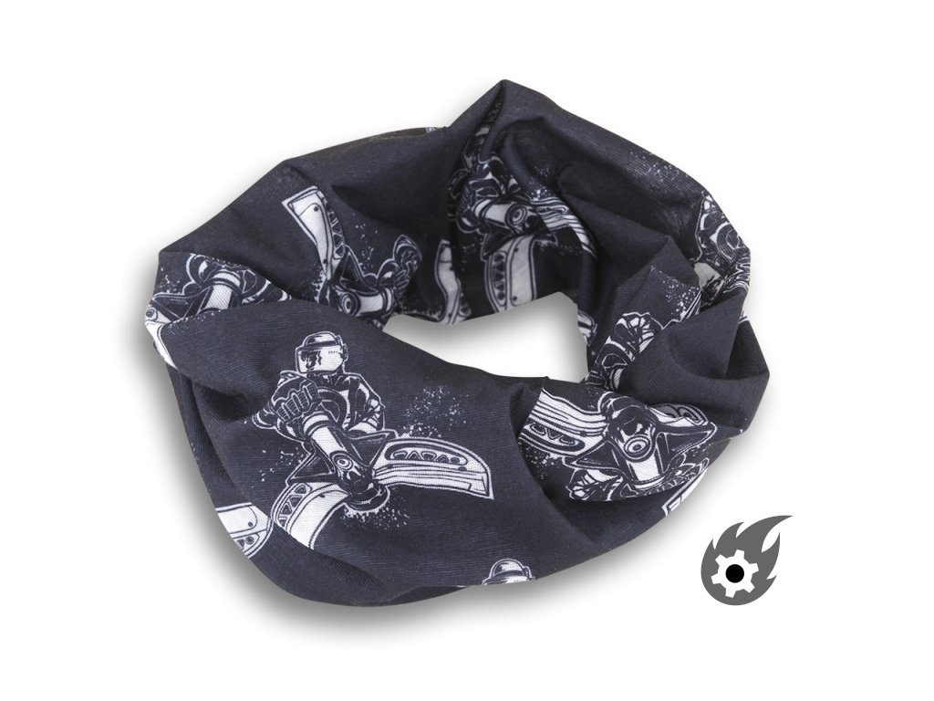 Tunelový šátek je ideální multifunkční šátek pro volný čas, sport a technické použití u hasičů. Dá se rychle a snadno předělat a použít jako čelenka, čepice, šála, kukla, pirátský šátek, potítko nebo šátek. Díky tomu se hodí zejména ve větrných dnech, například při cyklistice a lyžování, ale také jako ochrana před sluncem.