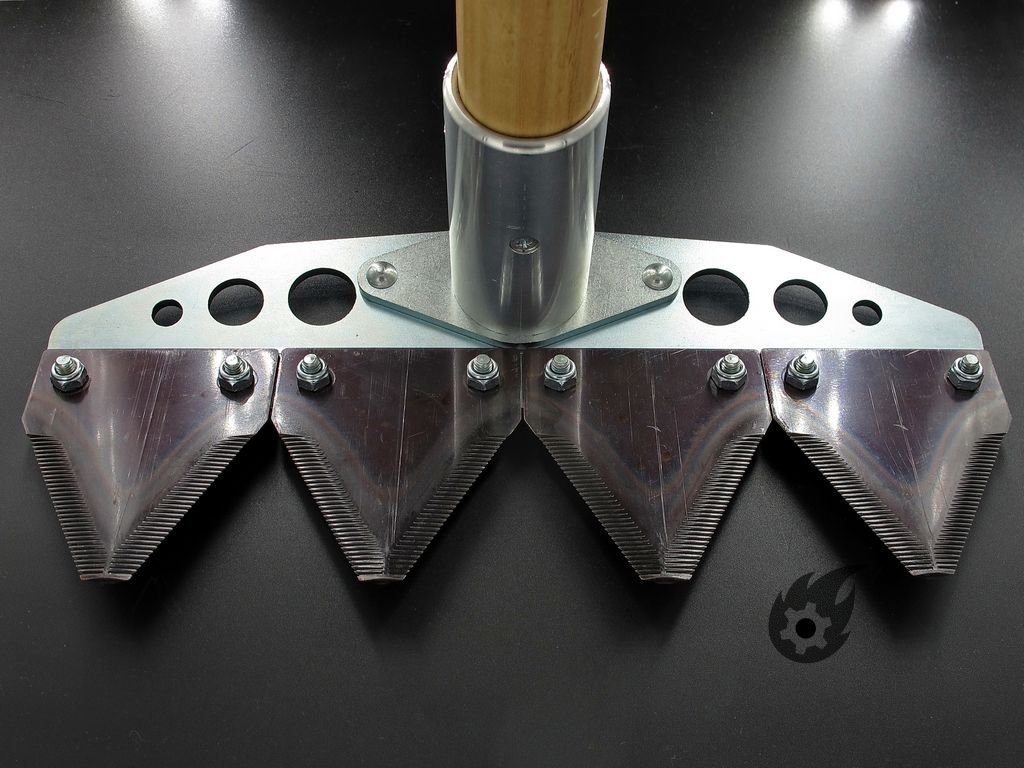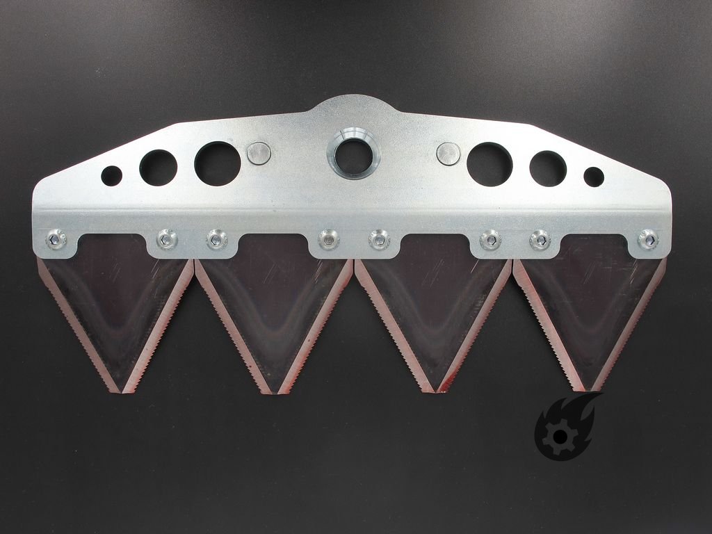 Skládá se ze čtyř řezných nožů z tvrzené uhlíkové oceli.