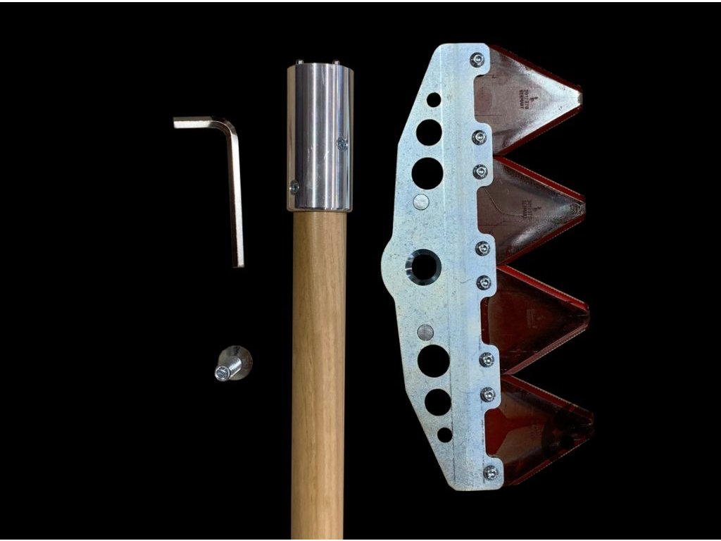 - Hlava/čepel RAKE - je připojena k univerzální rukojeti jediným šroubem, což umožňuje rychlou montáž a demontáž hlavice, přispívá k lepší rotaci hlav, uložení nářadí v hasičských a servisních vozidlech.