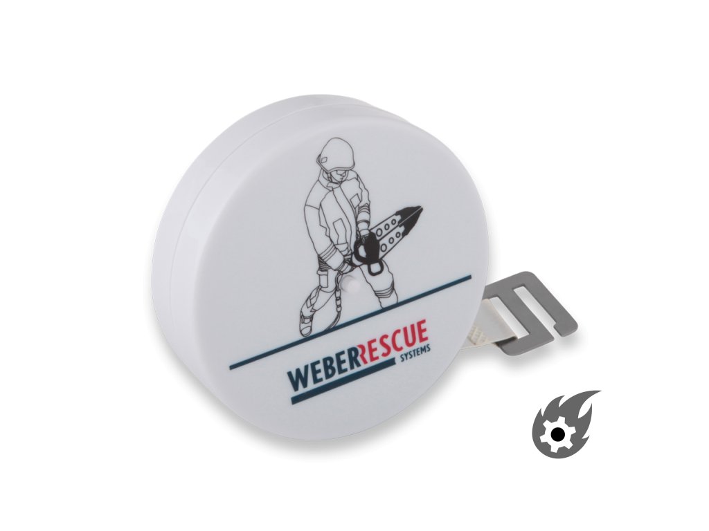 Svinovací metr je dlouhý 2 metry se standardní stupnicí na přední straně. Na zadní straně jsou všechny běžné vyprošťovací válce od WEBER RESCUE Systems (RZT 2-600, RZT 2-775, RZT 3-1310 XL, RZ 1-850, RZT 2-1170, RZT 2-1500 (XL), RZ 2- 1290 a RZ 3-1640) jsou zaznamenány s příslušnou instalační délkou (zcela zatažené). Páska se automaticky zachytí cca každé 3 cm a lze ji opět navinout pomocí odpruženého tlačítka. Pomocí otočného kolečka na zadní straně lze snadno určit maximální délku konce válce.