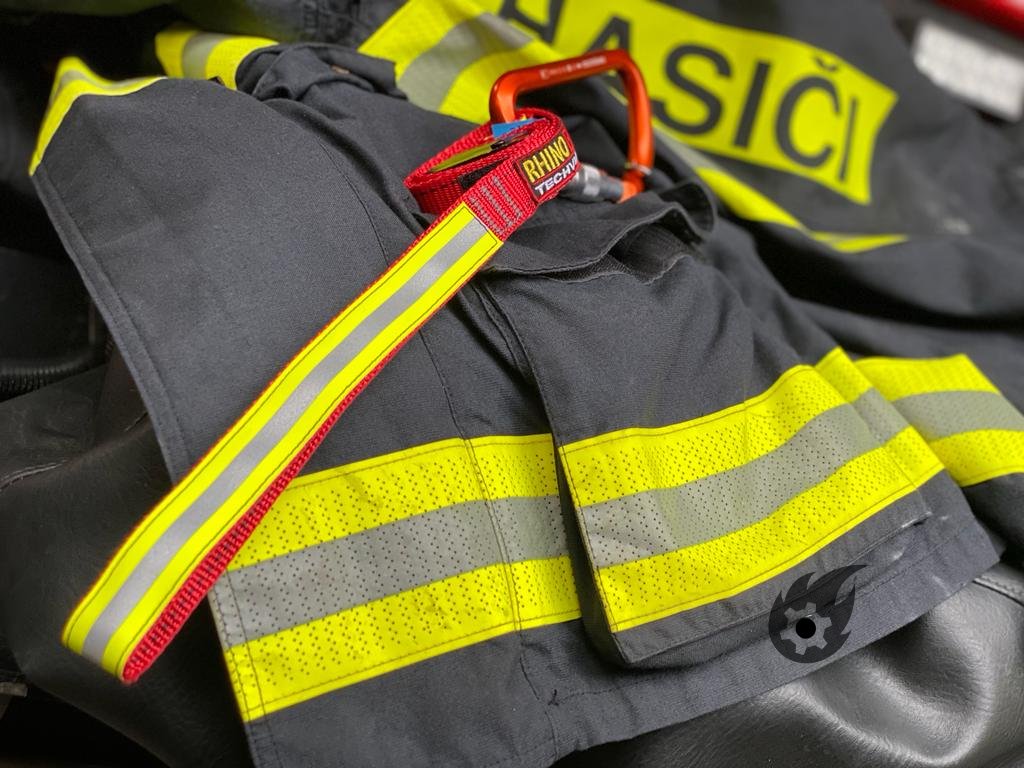 Multifunkční pás Rhinoevac umožňuje rychlé ukotvení hasičských zařízení, přepravu vybavení, záchranu obětí a záchranářů.